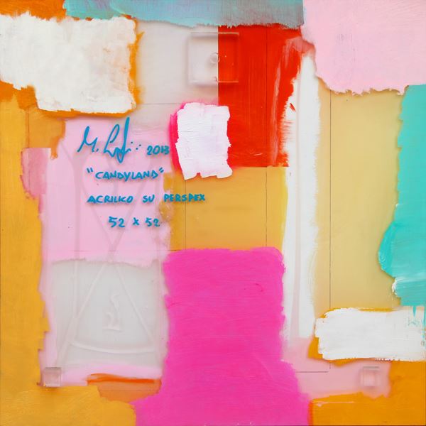 cm 52x52Firma, data, titolo, tecnica, dimensioni "M. Casentini, 2013, Candyland, acrilico su perspex, 52x52" (al retro)