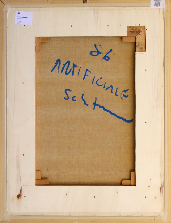 cm 80x60Data, titolo, firma "86, Artificiale, Schifano";