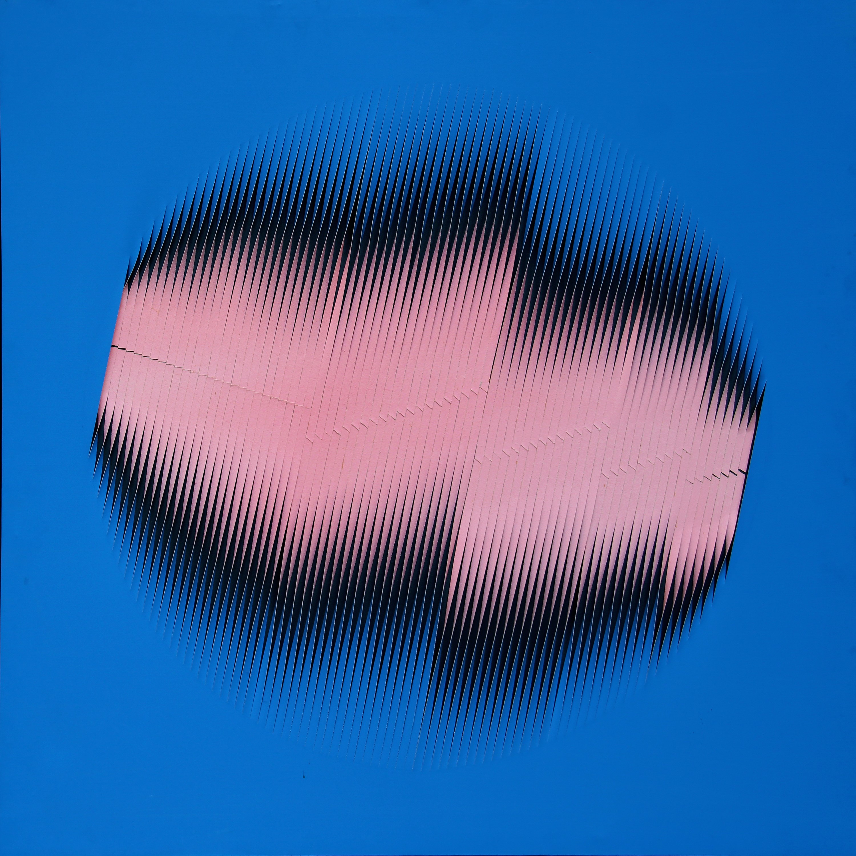 Firma, dimensioni, titolo, data "Gioppe di Bella, cm 80x80, S.T., 2004" (al retro)