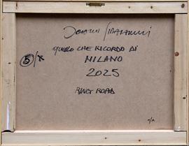 Firma, titolo, data, titolo, numerazione "Jonathan Guaitamacchi, Quello che ricordo di Milano, 2025, Ring Road, 1/A" (al retro)
