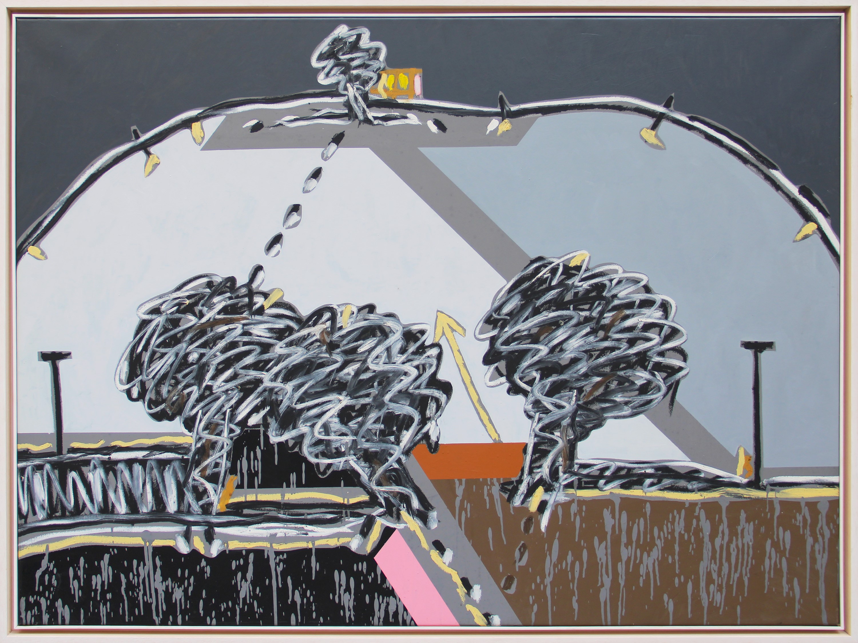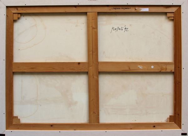 Titolo, firma, data "Impossibile paesaggio, Pozzati, '92" (al retro)