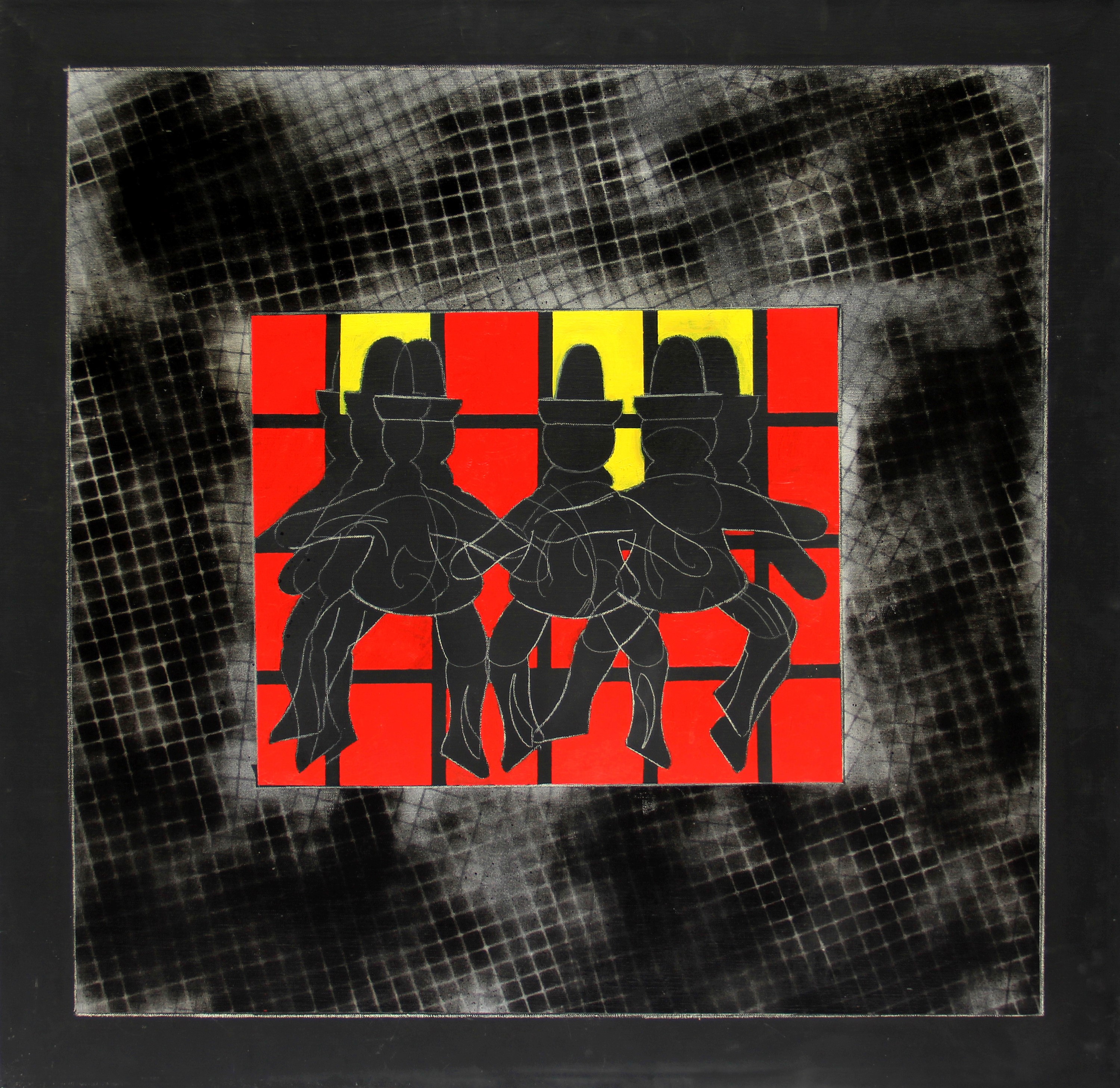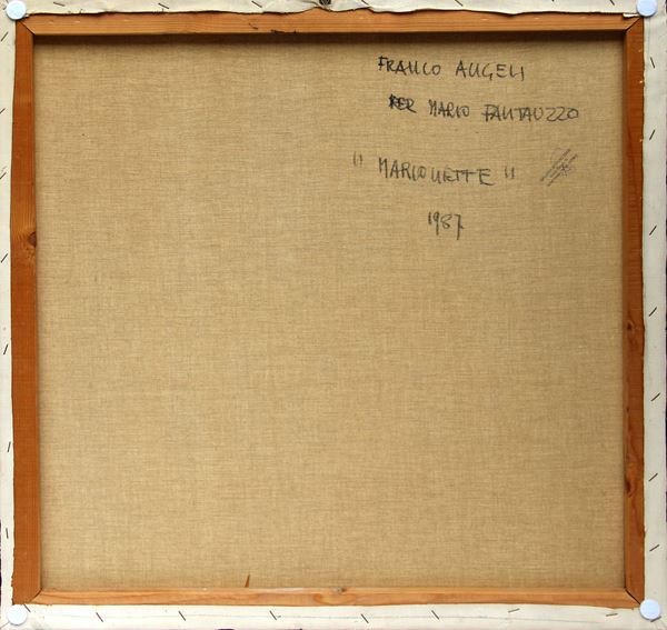 cm 70x70Firma, dedica, titolo, data "Franco Angeli, Marionette, 1987";
