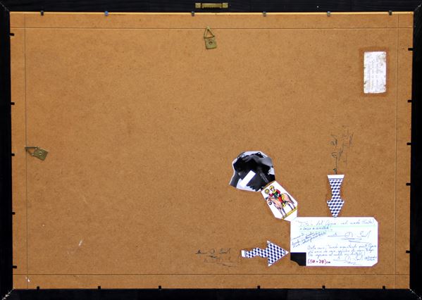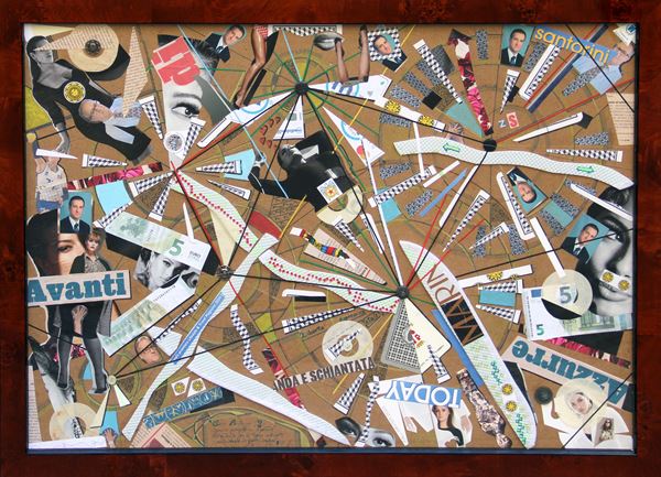 cm 50x70Titolo, firma "Caos Moderno-2: Spazio prospettico "dinamico" deformato con 6 forze centripete-centrifughe in punti casuali, Ermanno Di Sandro" (in basso a sinistra)
