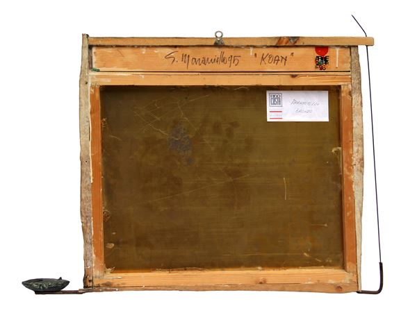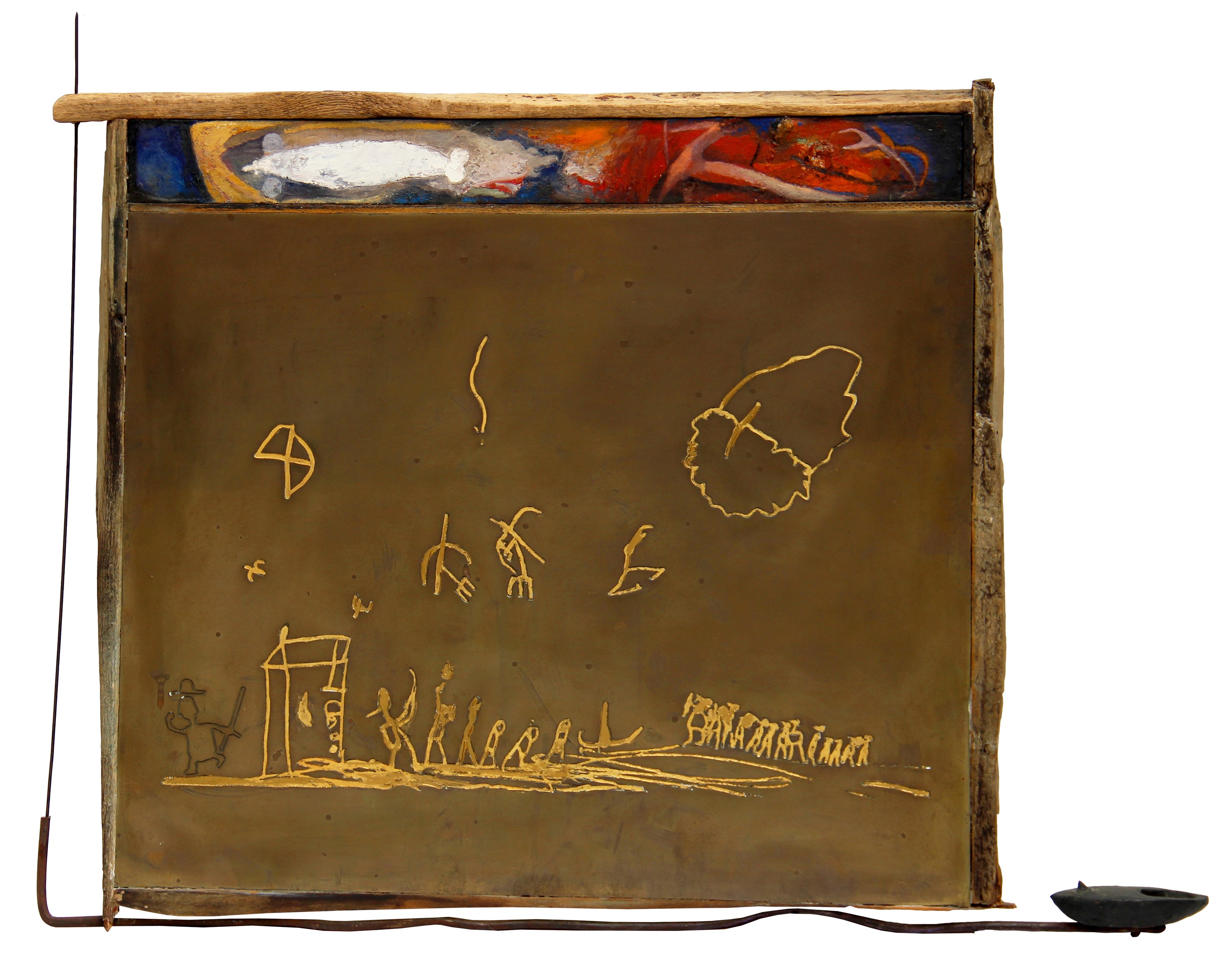 pittura e tecnica mista su assemblaggio di legno, rame e bronzo