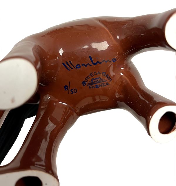 Firma, numerazione, manifattura "Mondino, 8/50, Bottega Gatti Faenza" (base)
