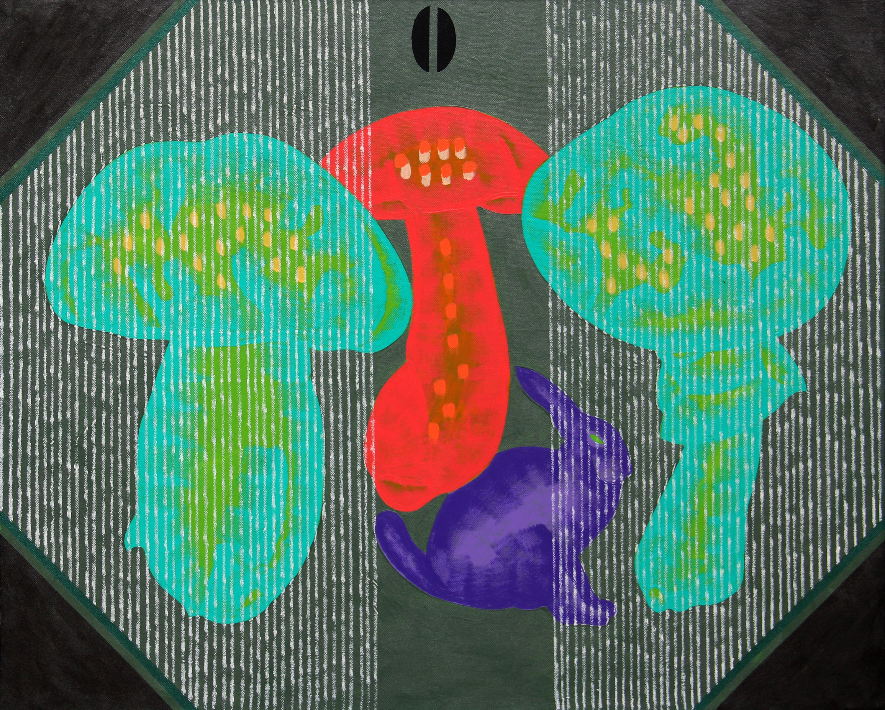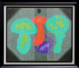 cm 80x100Titolo, firma, data "Ri-natura in televisione, Pozzati, '05" (al retro)