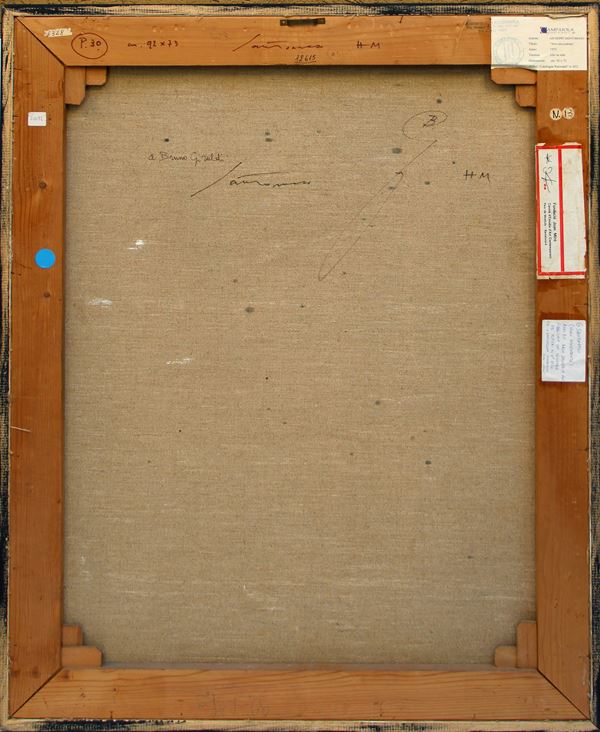 cm 92x73Dedica, firma "A Bruno Giraldi, Santomaso";