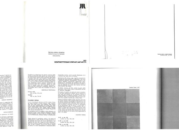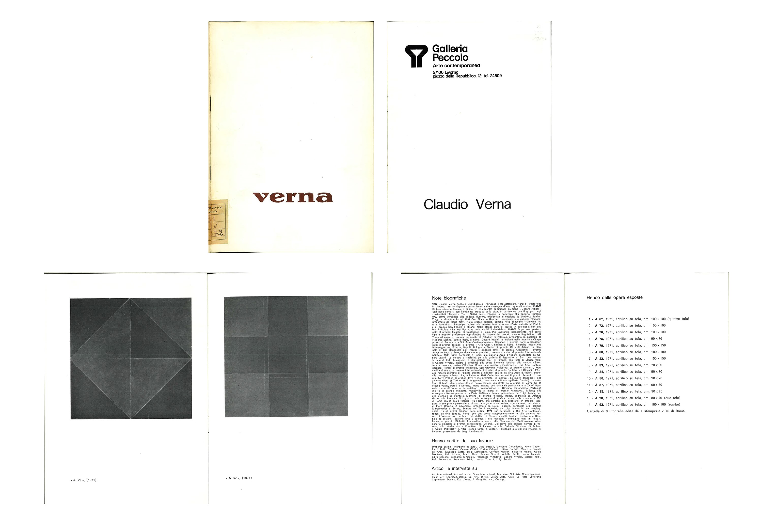 V. W. Feierabend "Claudio Verna. Catalogo ragionato", Silvana Editoriale, Milano 2010, p. 313, n. cat. 195"Verna", Galleria Peccolo, Livorno 1972, rif. 7, ripr b/n