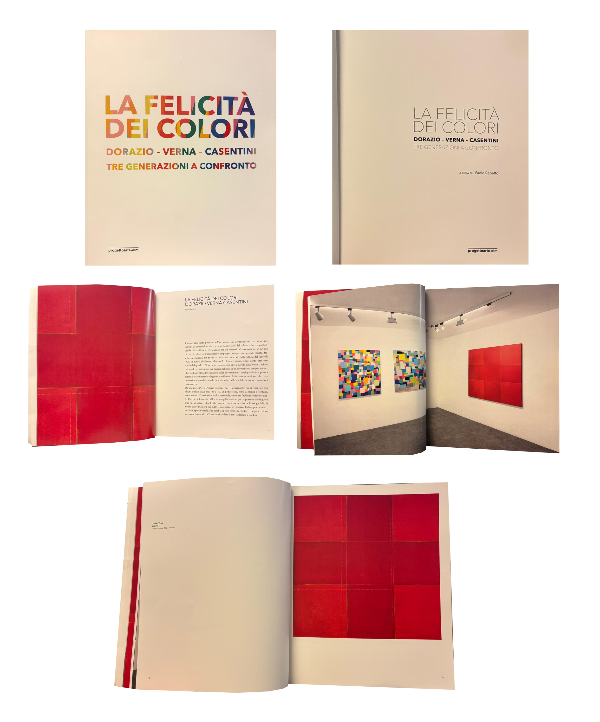 P. Repetto "La felicità dei colori. Dorazio-Verna-Casentini. Tre generazioni a confronto", Progettoarte-elm, Milano 2025, pp. 6-17-19, ill.