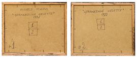 Titolo, data, numerazione "Germinazione celeste, 1977, n. 2" (al retro)