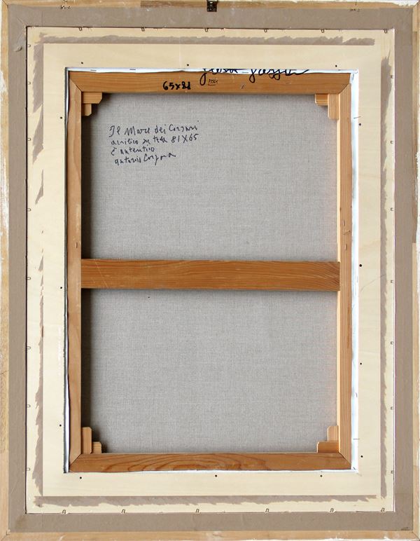 Tilted, technique, sized, declaration of authenticity, signed "Il mare dei corsari, acrilico su tela, 81x65, è autentico, Antonio Corpora" (on the reverse)
