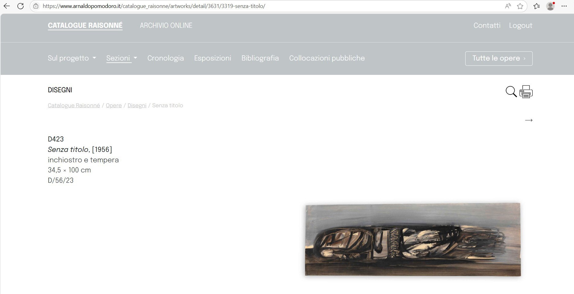 Catalogue Raisonné Arnaldo Pomodoro online, under no. D423Authentication:
