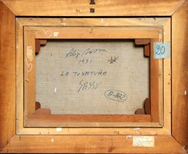 label of XXV Premio Suzzara, Mantova 1972, with writing "Galleria 32, Via Brera Milano" (on the reverse)