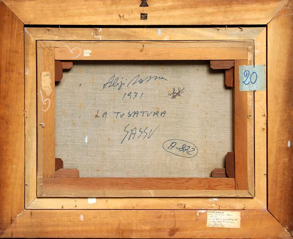 cm 43x64Signed, dated, titled, signed, numbered "Aligi Sassu, 1971, La tosatura, Sassu, A-872";