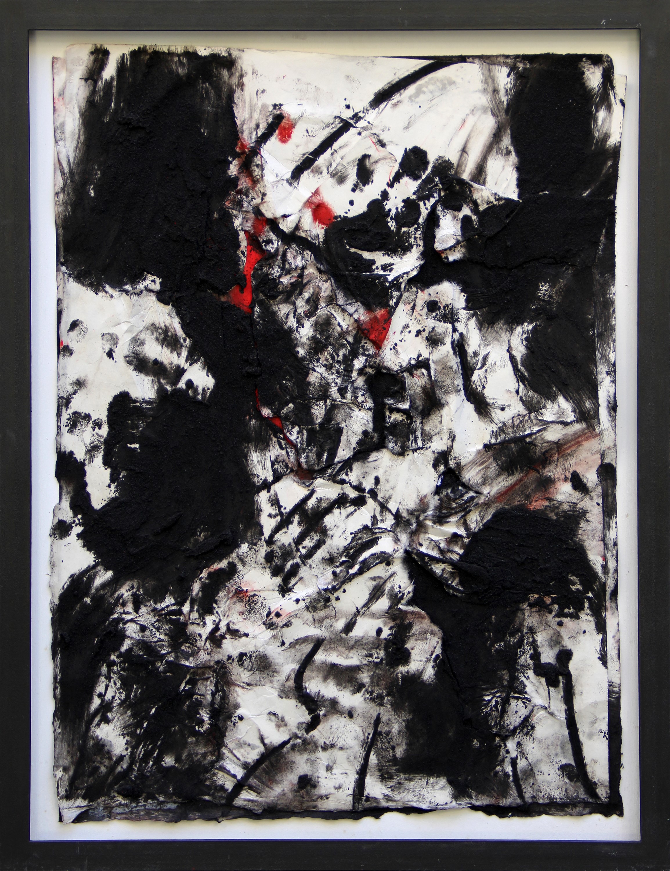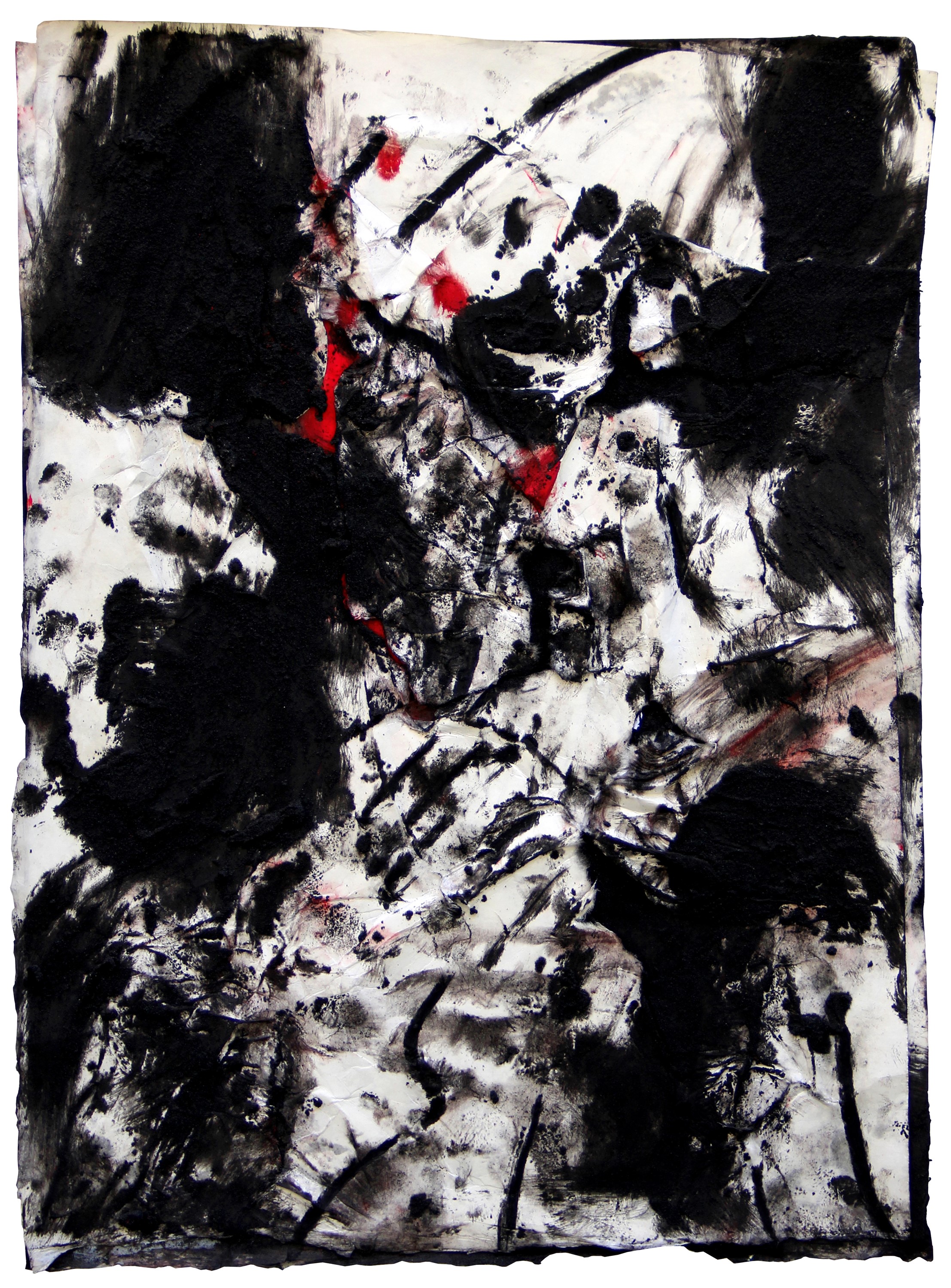 charcoal, iron oxide, volcanic sand and cadmium red on layered paperDimensions: