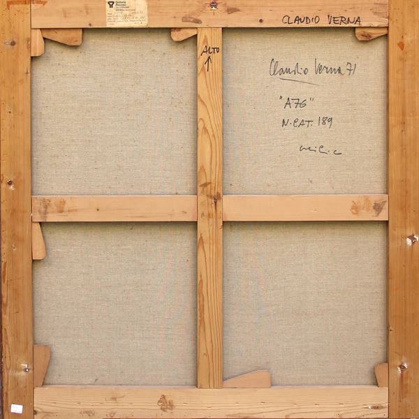 cm 100x100Signed, dated, titled, numbered, technique "Claudio Verna, 71, A 76, n. cat. 189, acrilico";
